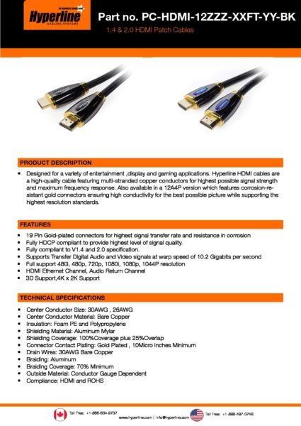 Hyperline PC-HDMI-12ZZZ-XXFT-YY-BK - Hyperline